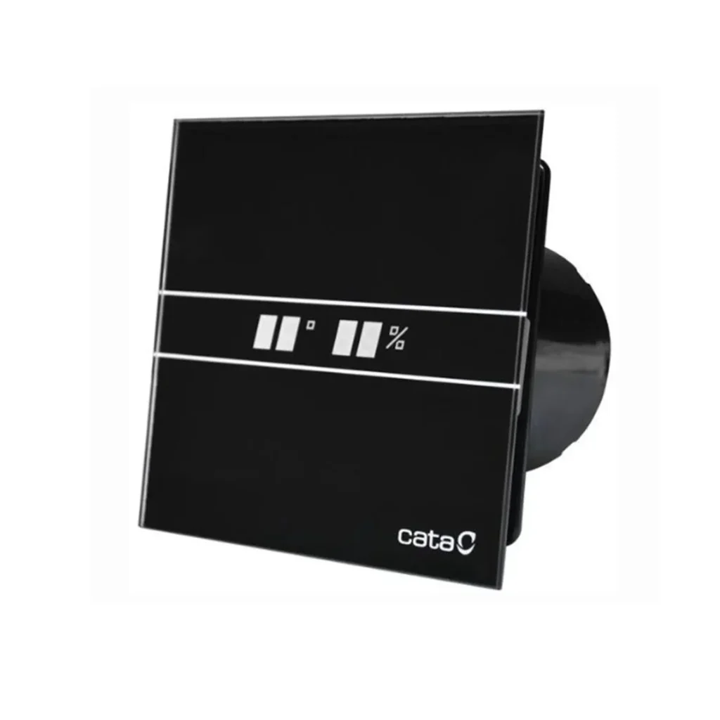 CATA E 100 GTH – tai aukštos kokybės vonios ištraukimo ventiliatorius, turintis išmaniąsias funkcijas: drėgmės jutiklį, laikmatį (TIMER), LED ekraną ir du ventiliavimo greičius, leidžiančius efektyviai valdyti oro cirkuliaciją pagal patalpos poreikį. Dėl modernaus dizaino ir grūdinto stiklo priekinio skydo, jis ne tik funkcionalus, bet ir stilingas.